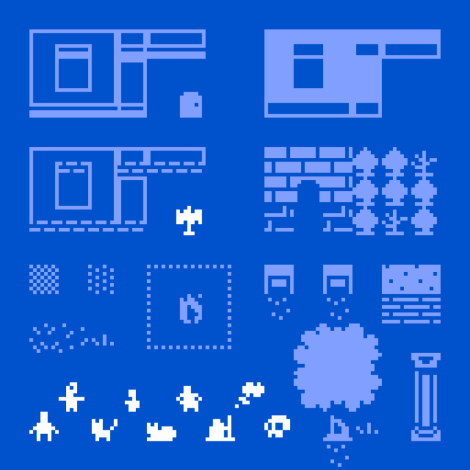 Tileset has been updated with a few new sprites, items and tiles: A signpost, a few little characters, a thought bubble. Most importantly, I wanted to add the thing I saw my students struggle with more than anything: An okay-looking fire animation.